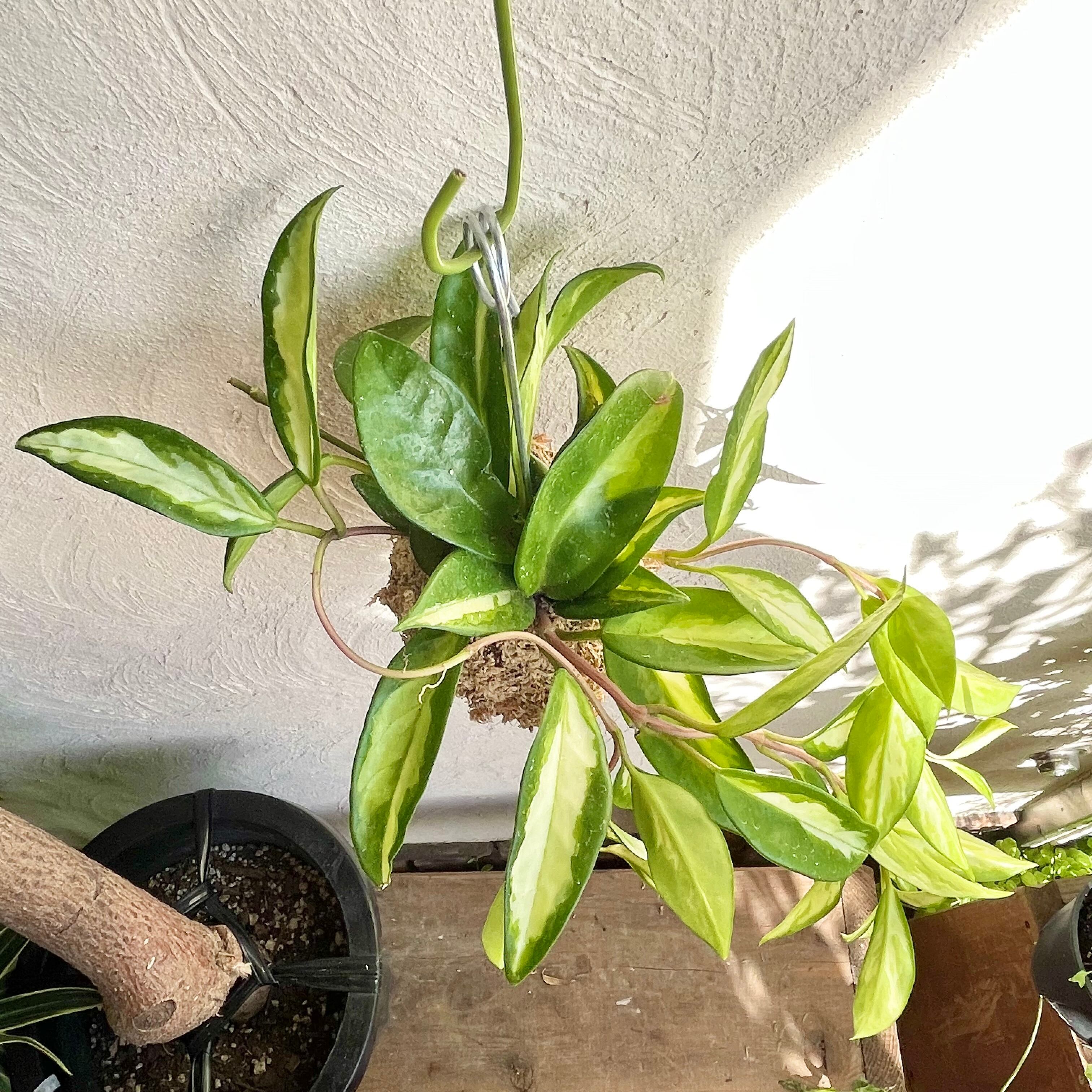 イエローと緑色の斑入りで、コントラストの美しいホヤ・エキゾチカを吊り玉にしました。